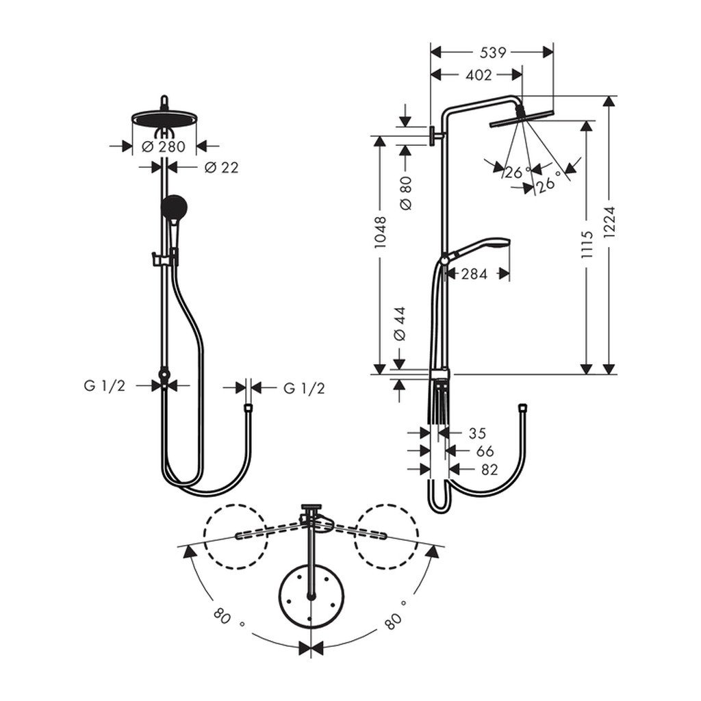 - Obsahuje: horná sprcha, ručná sprcha, sprchová hadica, sprchová tyč, držiak ručnej sprchy