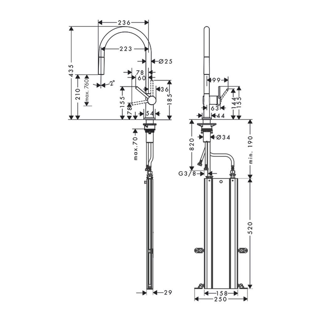Drezovej batérii hansgrohe M54 Talis dominujú zaoblené krivky do tvaru U a minimalistické krivky. Jej štíhle telo sa vyznačuje atraktívnym vzhľadom z nehrdzavejúcej ocele a príjemným designom. Drezová batéria je vybavená praktickou výsuvnou koncovkou. Vďaka nej napustíte vodu do akéhokoľvek hrnca a taktiež komfortne umyjete kuchynský drez vo všetkých jeho zákutiach.