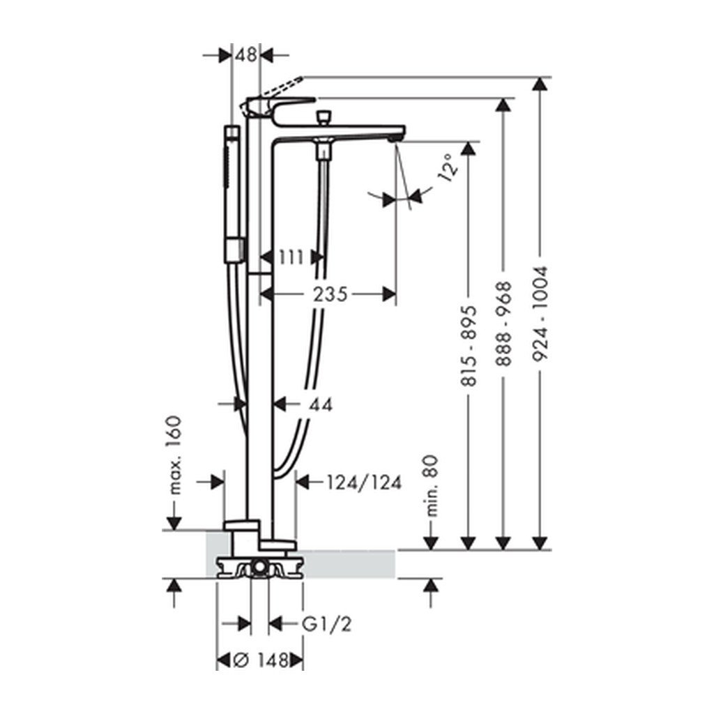 Hansgrohe Metropol, páková vaňová batéria na podlahu, chrómová, HAN-32532000