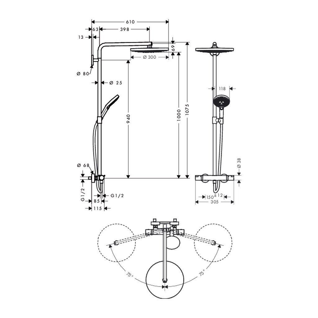 Hansgrohe Raindance Select S, Showerpipe 300 2jet s termostatom, chrómová, HAN-27133000