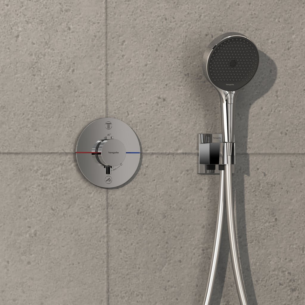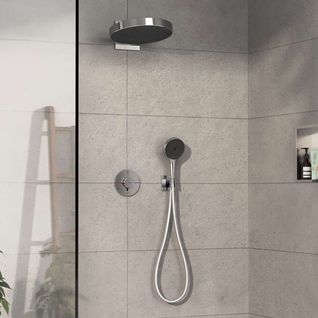 Podomietkový termostat ShowerSelect Comfort S spoločnosti hansgrohe je prvou voľbou, keď je prívod vody pod úrovňou hladiny vody (napr. hansgrohe Exafill) vďaka ochrane proti spätnému toku podľa normy EN1717. Zároveň dizajnovo zvýrazňuje kúpeľňu. Ultraplochý dizajn ponúka viac priestoru v sprche alebo vo vani vďaka minimálnej inštalačnej výške. Elegantná tieňová medzera vytvára dojem, že sa termostatická batéria zdanlivo v stave beztiaže vznáša pred stenou.