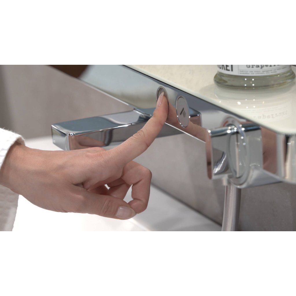 Jedným stlačením zmeníte typ prúdu či druh sprchy. S tlačidlom Select je možné batérie obsluhovať veľmi jednoducho. Stlačením tlačidla sa voda nielen spúšťa a zastavuje, ale taktiež ním je možné u ručnej alebo hornej sprchy prepínať jednotlivé typy dýz. U termostatu je možné vďaka tejto integrovanej technike úplne presne púšťať a zastavovať prúd vody, aj voliť rôzne sprchy. V prípade potreby môžete batériu ovládať bez použitia rúk, pretože tlačidlo je možné prepínať intuitívne rukou alebo lakťom. Tlačidlo Select Hansgrohe garantuje jednoduchosť každý deň a je ideálne pre všetkých, ktorí ocenia komfortný a príjemný zážitok zo sprchovania.