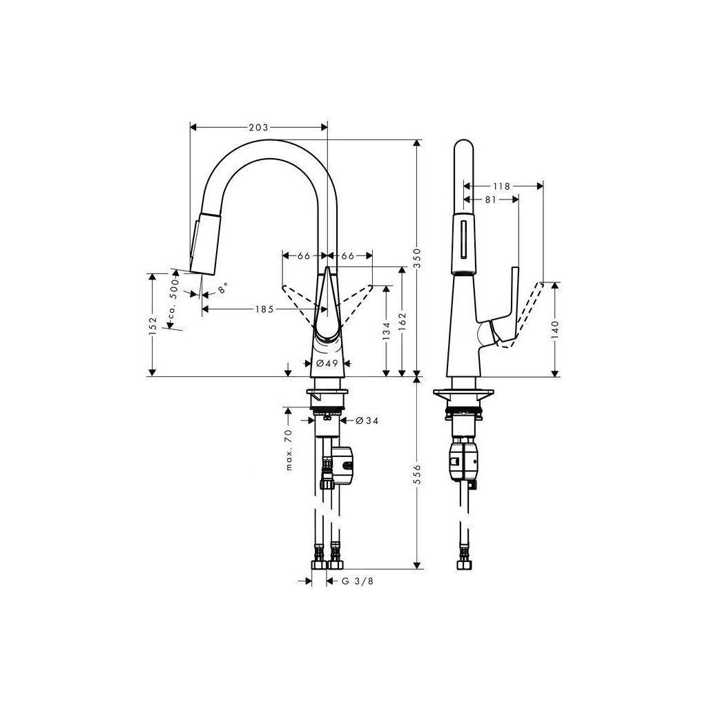 Hansgrohe Talis M51, drezová batéria s výsuvnou spŕškou, vzhľad nehrdzavejúcej ocele, HAN-72815800