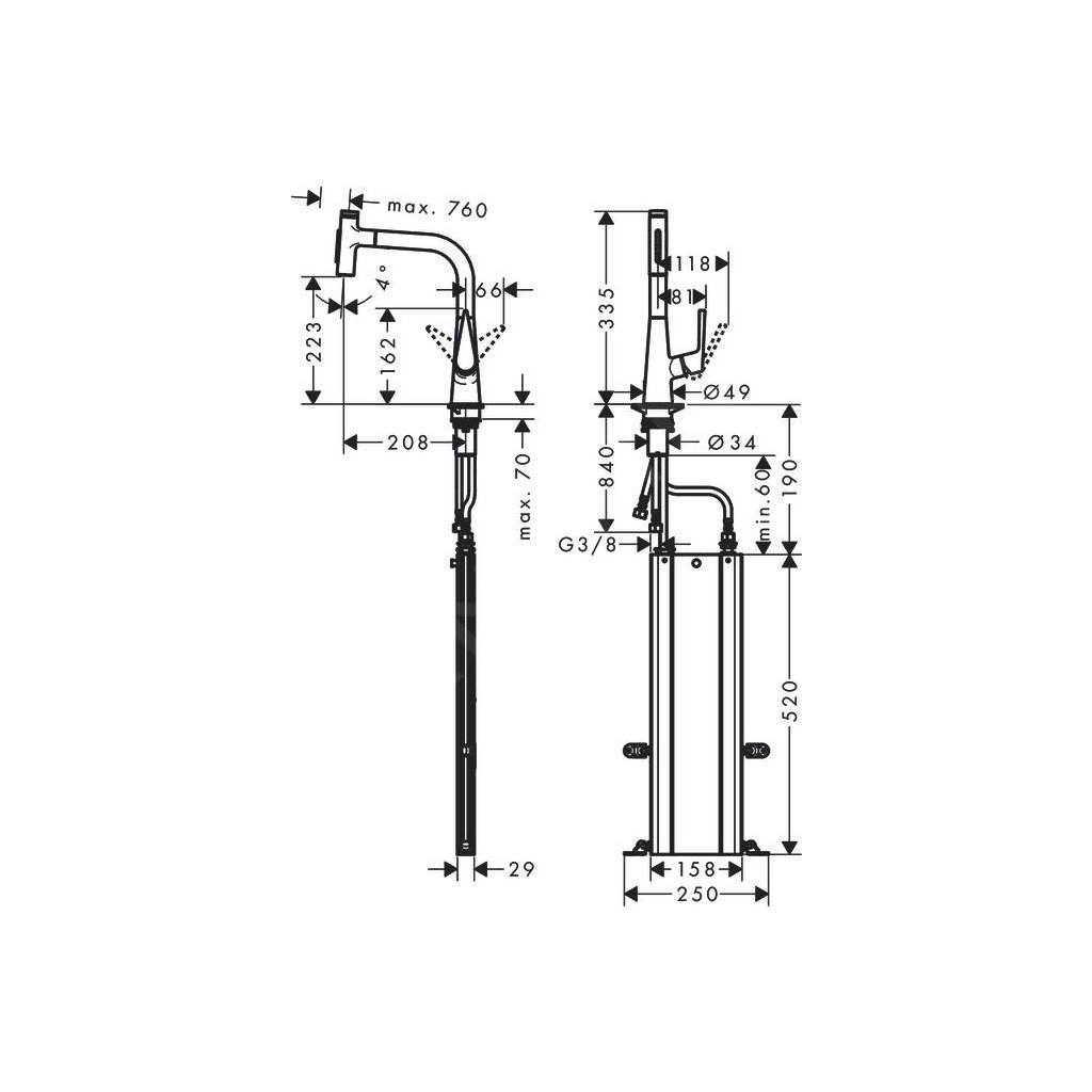 - hadica sa vyťahuje až 76 cm a zaručuje príjemnú prácu a voľnosť pohybu v okolí drezu
