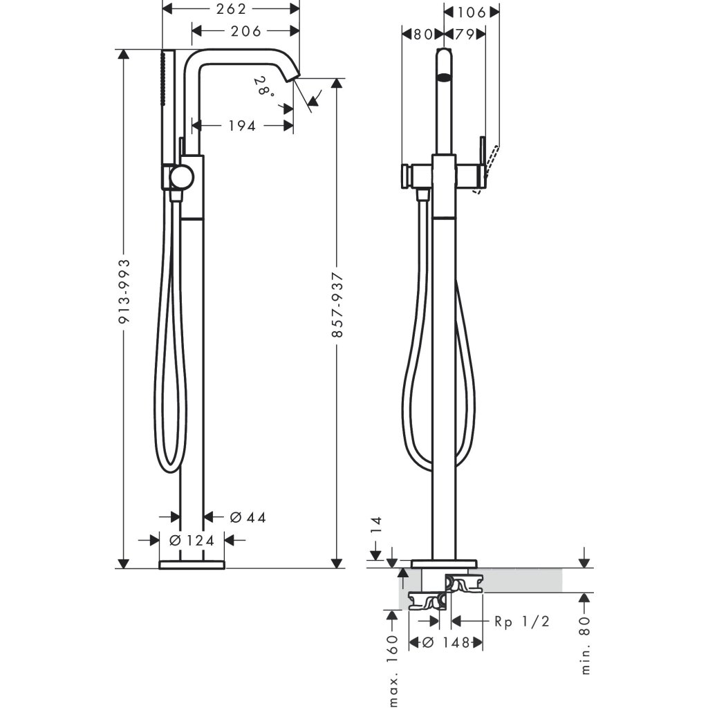 Hansgrohe Tecturis S, páková vaňová voľne stojaca batéria na podlahu, kartáčovaný bronz, HAN-73440140