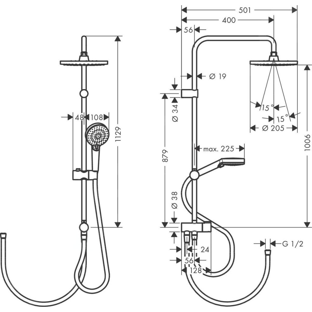 Nástenná sprchová súprava Showerpipe 200 na renováciu obsahuje