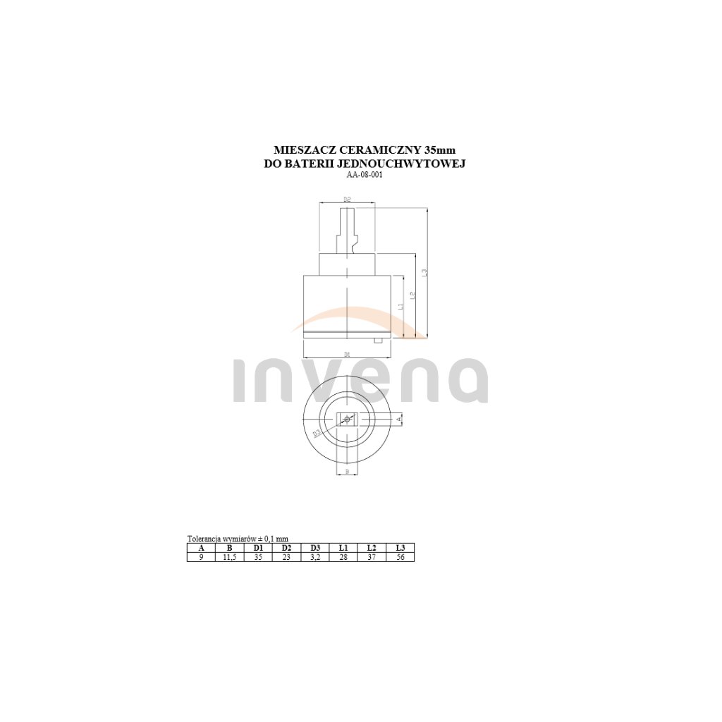 Invena, keramická kartuša do batérie FI 35mm, INV-AA-08-001-L