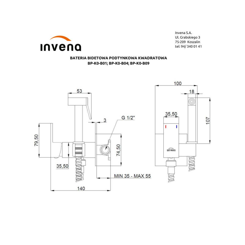 Invena, podomietková bidetová batéria, chrómová, INV-BP-K0-B01-L
