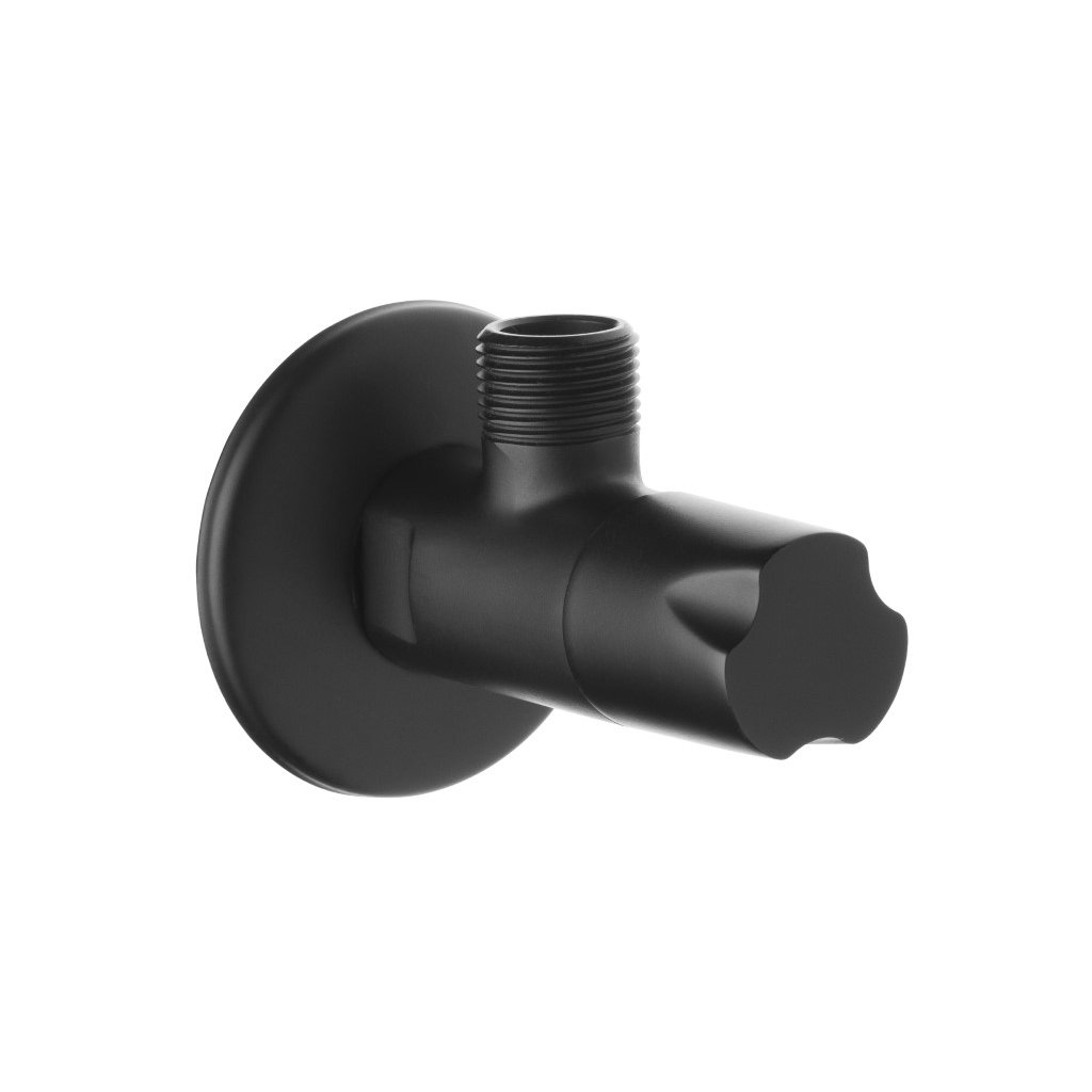 Mosadzný uhlový ventil má keramickú hlavu, ktorá zaisťuje tesnosť a spoľahlivosť výrobku. Dekoračný gombík, maskovacia ružica a matný čierny povrch mu dodávajú triedu a eleganciu.