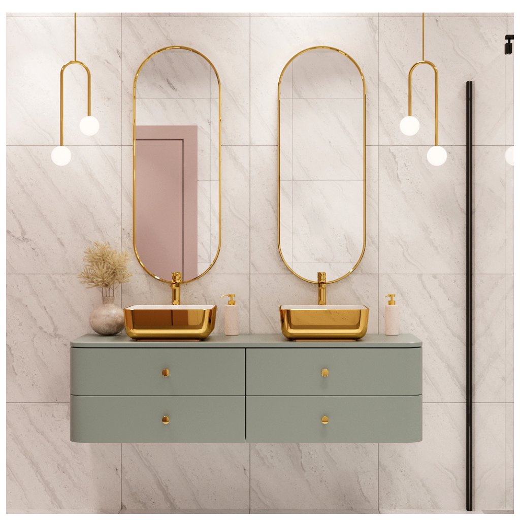 Invena Malaga, umývadlo na dosku 39x39x14 cm, biela-zlatá, INV-CE-39-013-W