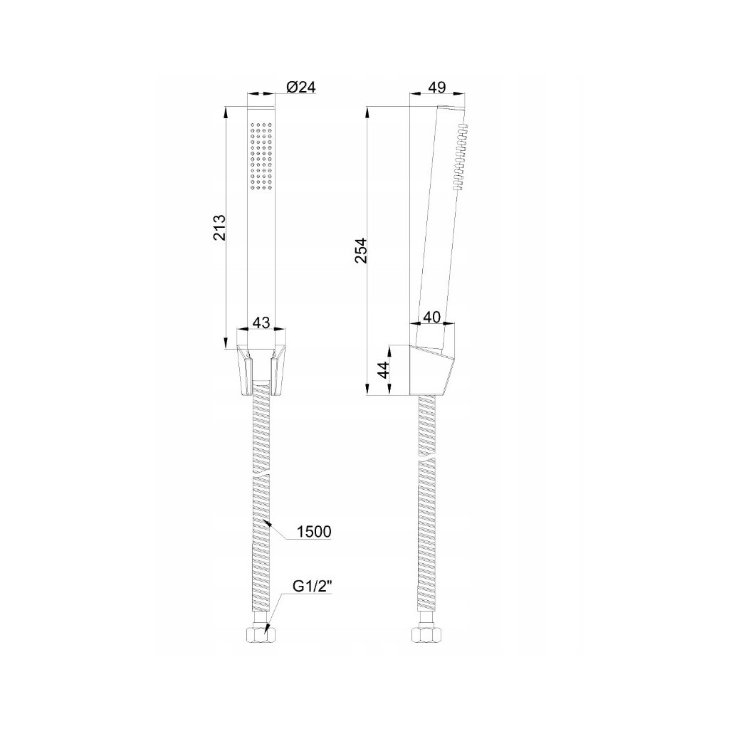 - Ručný prúd, 1-funkčný (normálny prúd), Ø 2,5 cm, nehrdzavejúca oceľ, so systémom proti vodnému kameňu