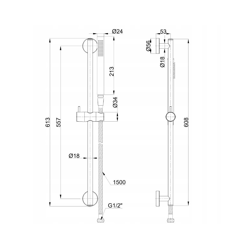 Sprchová súprava ALONIA na sprchovom stĺpe je praktickým a štýlovým riešením do každej kúpeľne. 60 cm vysoký sprchový stĺp umožňuje pohodlné pripevnenie sprchy a nastaviteľné montážne konzoly uľahčujú inštaláciu. Ručná sprchová hlavica s priemerom 2,5 cm vyrobená z nehrdzavejúcej ocele ponúka jeden typ rozprašovania (normálny) a systém proti vodnému kameňu zaisťuje dlhodobú spoľahlivosť a jednoduché čistenie. Vďaka posuvnej rukoväti s gombíkom ľahko nastavíte polohu slúchadiel, čo zvyšuje komfort používania. Celok dopĺňa oceľová sprchová hadica s dĺžkou 150 cm, vyrobená v dvojitej väzbe, čo zaručuje jej odolnosť a estetický vzhľad.