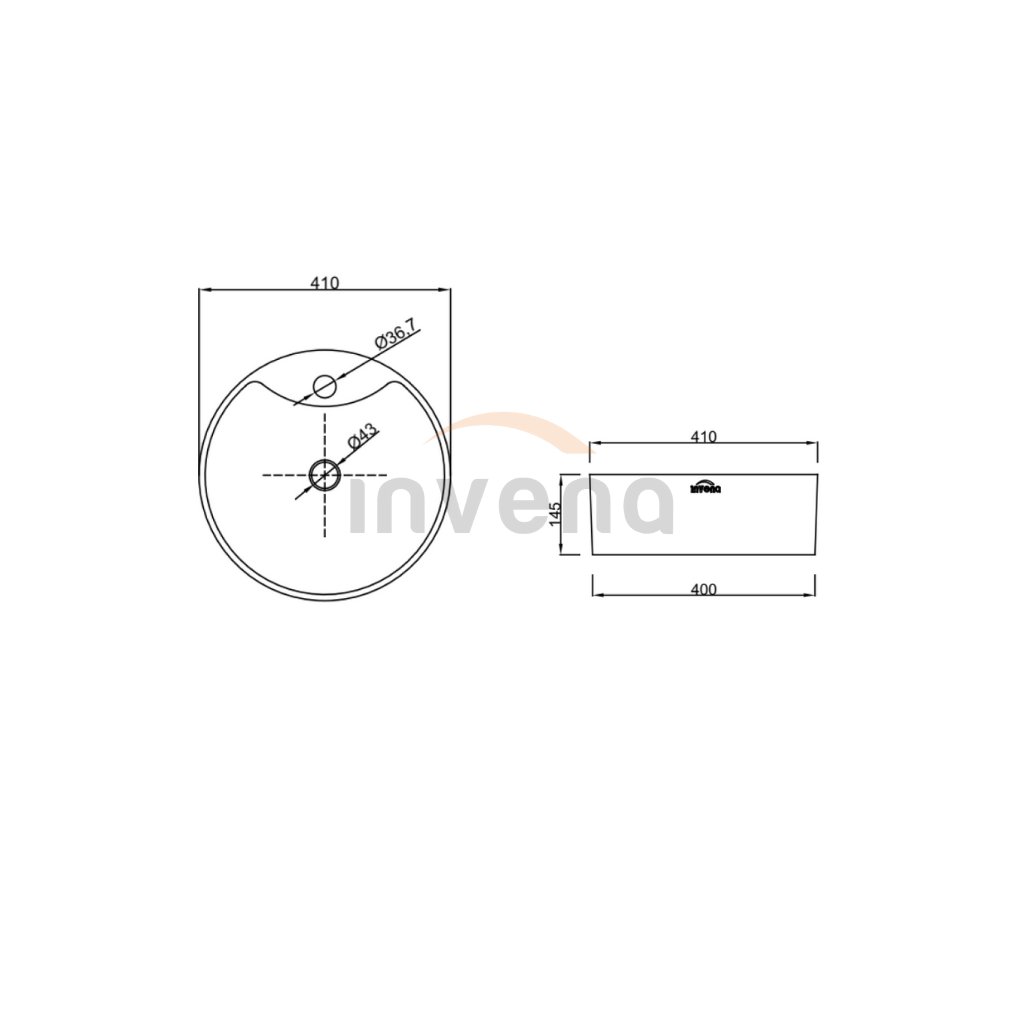 Invena Granada, okrúhle umývadlo na dosku 410x410x145 mm, biela, INV-CE-44-001-W