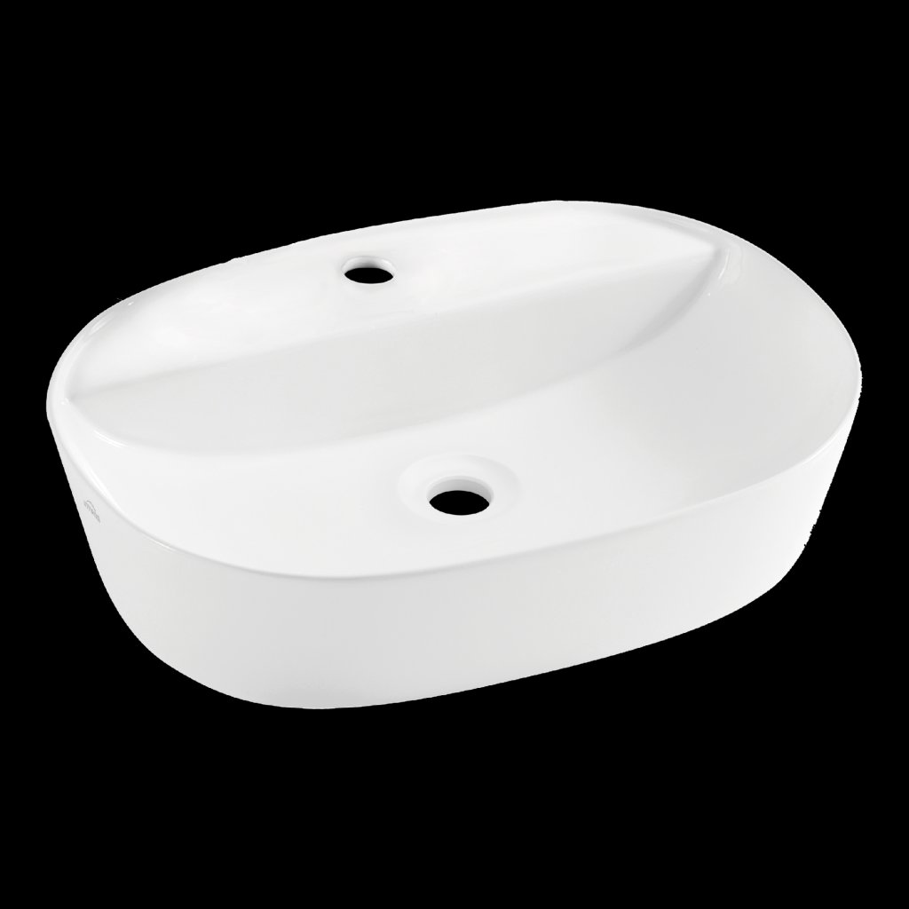 Elegantné keramické umývadlo na dosku zo série HALIA. Oválny tvar s praktickou odkladacou plochou pri otvore pre batériu spája moderný vzhľad a funkčnosť. Vhodné na montáž na dosku alebo skrinku s doskou.