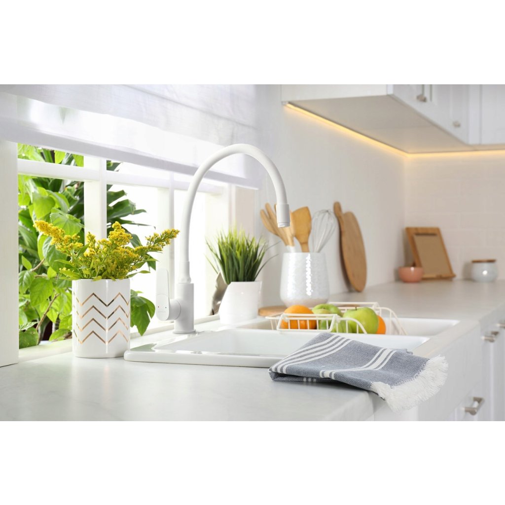 Invena Joga, stojanková drezová batéria s flexibilným ramenom, biela matná, BZ-32-P02-C
