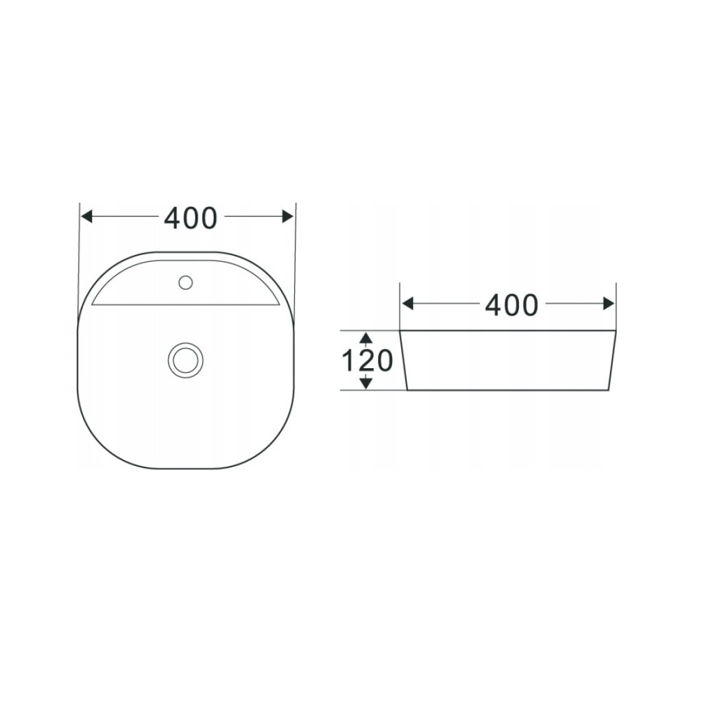 Keramické umývadlo na dosku zo série PEJTO s rozmerom 40 × 40 cm a výškou 12 cm. Moderný, čistý dizajn s otvorom pre batériu a bez prepadu je ideálny pre menšie aj stredne veľké kúpeľne.