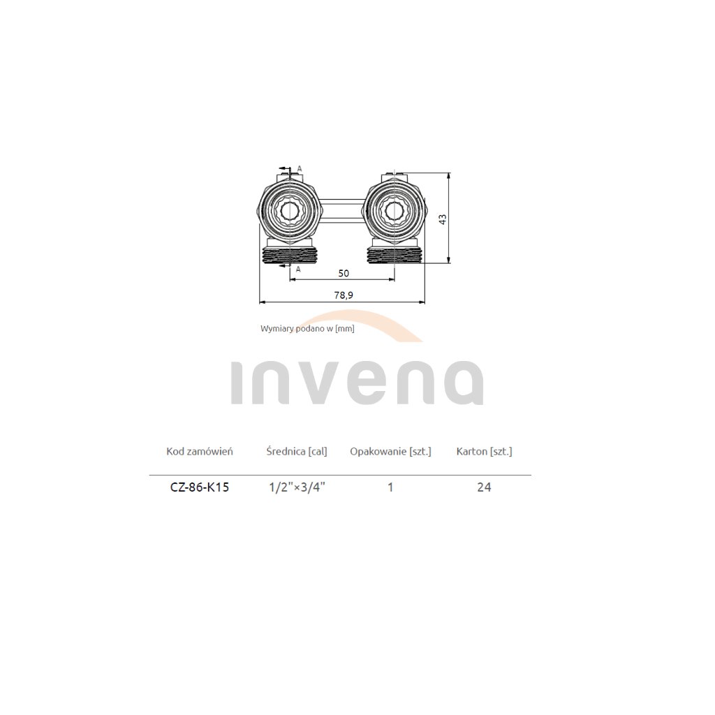 Invena Prov, dvojrúrkový uhlový ventil pre oceľové radiátory so závitom, INV-CZ-86-K15-Z