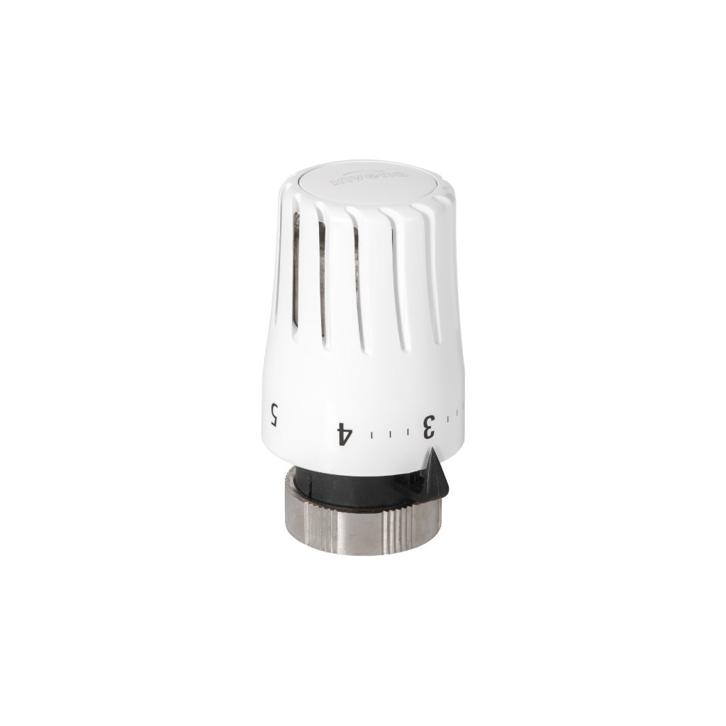 Termostatická hlavica pre tekuté médium vyrobená z bieleho plastu. Termostat sa vyznačuje malými rozmermi a elegantným vzhľadom. Hodí sa na termostatické vložky a ventily M 30×1.5 od spoločností ako Ferro, Idmar, Perfexim, Danfoss, Herz, Schlosser, Diamond.