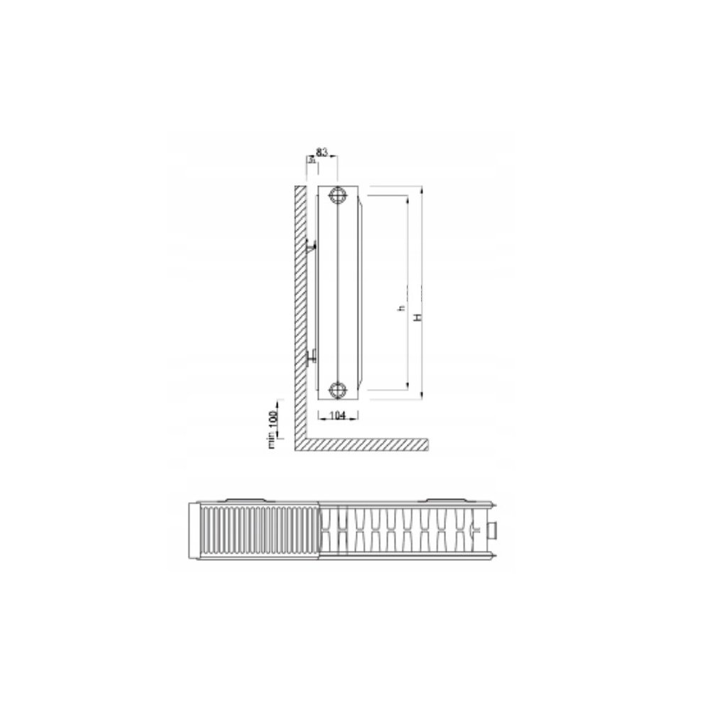 Dvojpanelové vykurovacie teleso v prevedení K22, ktoré umožňuje ľavé alebo pravé bočné pripojenie na rozvod vykurovacej sústavy.