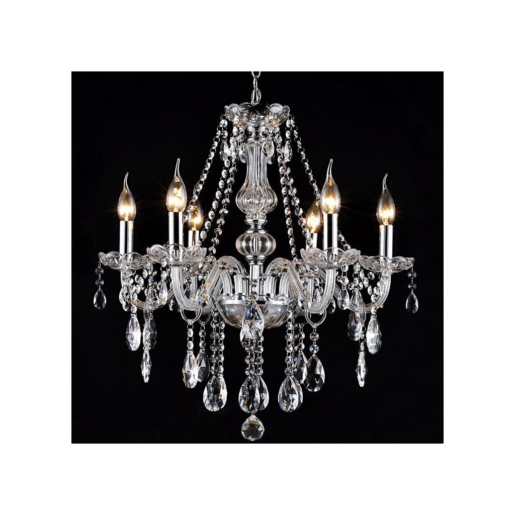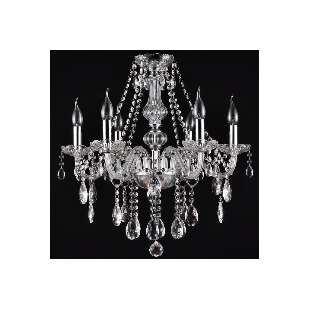 Toolight - Krištáľový závesný luster 6xE14 60W 392183, strieborná, OSW-04007