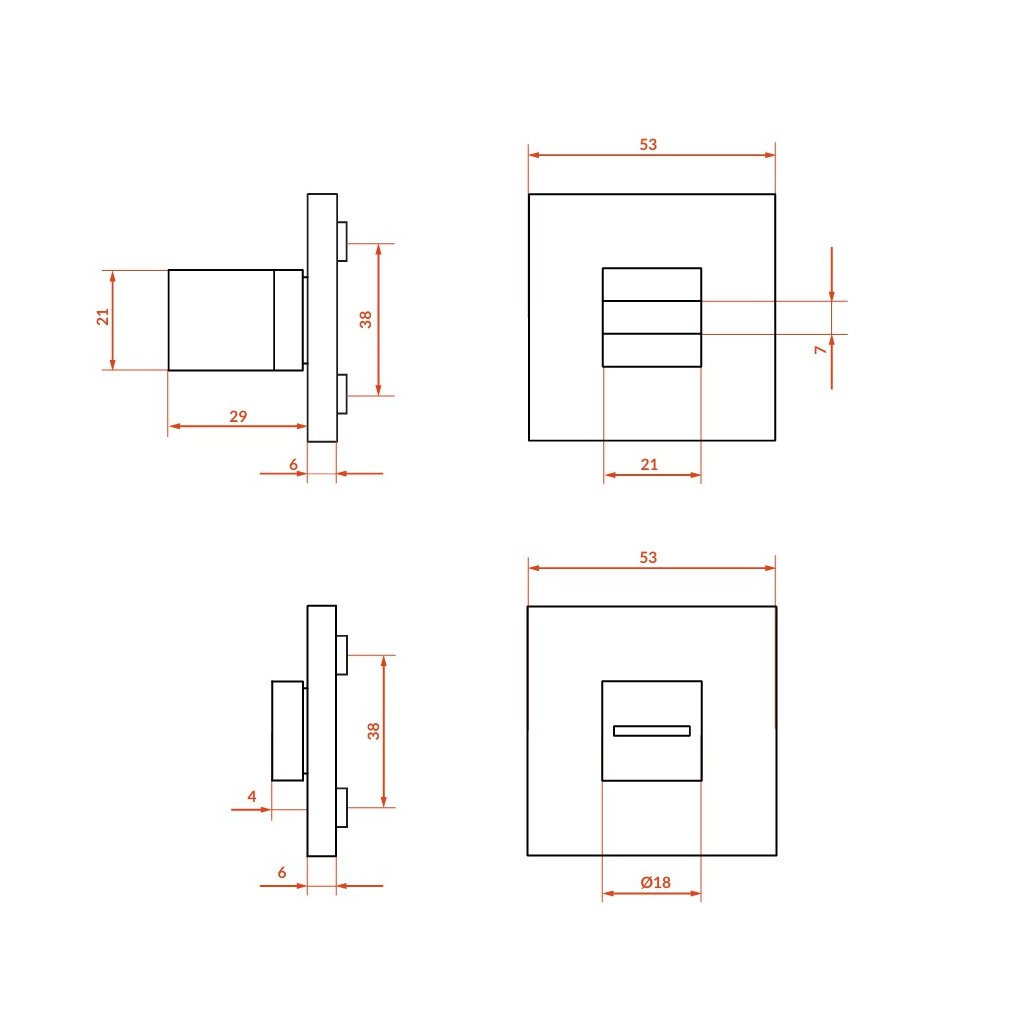 - Materiál: Hliník - maskovacia rozeta, zamak - montáž, vnútorná časť rozety