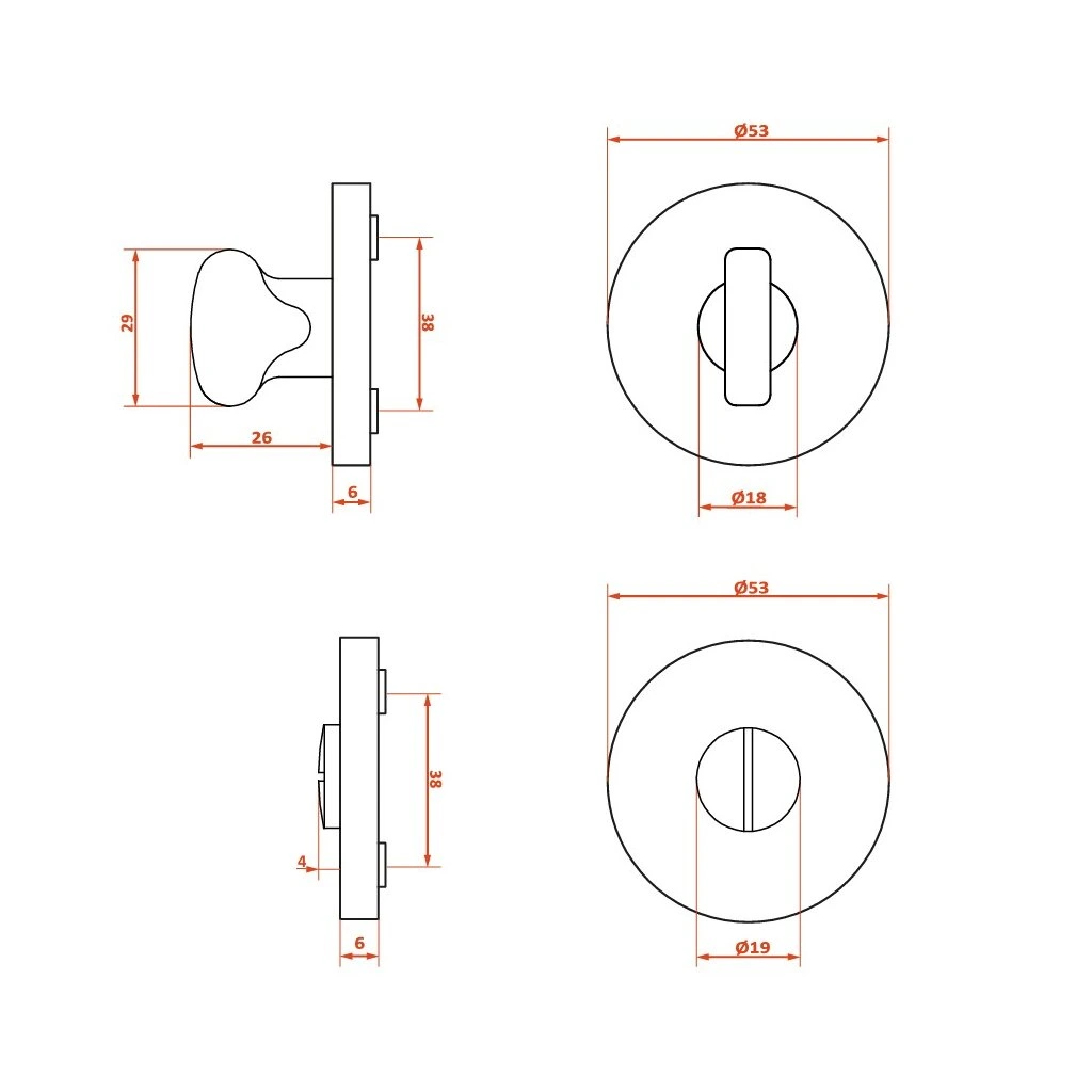 | Typ: | Rozeta ku kľučke pre WC zámok |