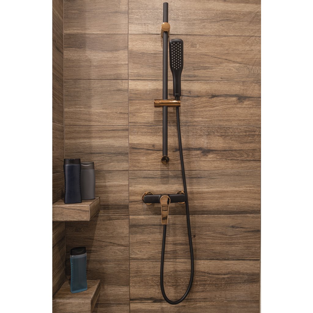Kuchinox Alanis, sprchový stĺp 70cm s ručnou sprchovou súpravou, čierna-ružové zlato, LAV-NQI_81A1