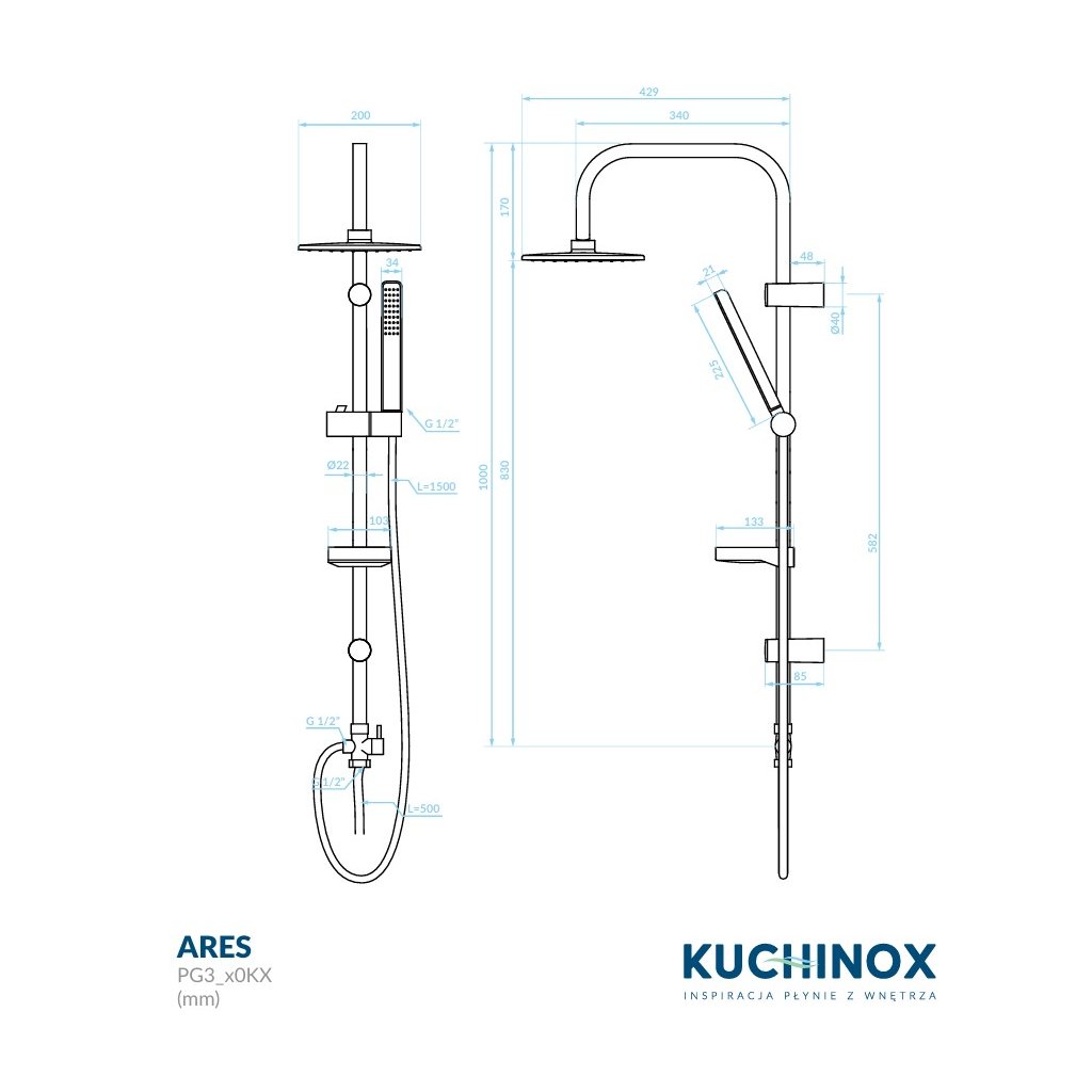 Ares je funkčný a perfektne navrhnutý sprchový stĺp. Skladá sa zo štyroch častí: hadica, slúchadlo, sprchový kohútik a dažďová sprcha. Práve ten spôsobuje, že používanie stĺpca je veľmi pohodlné. Sprchy sú relaxačné a príjemné. Veľkou výhodou dažďových prehánok je aj úspora vody. Moderné modely majú prevzdušňovače, t.j. špeciálne sitká na výtoku, ktoré prevzdušňujú odtekajúci prúd. Tento proces umožňuje výrazne znížiť spotrebu vody a optimalizovať tak výšku účtov. Sprchový stĺp Ares je dodávaný s miskou na mydlo – súprava sa pohodlne používa a má konzistentný vzhľad.