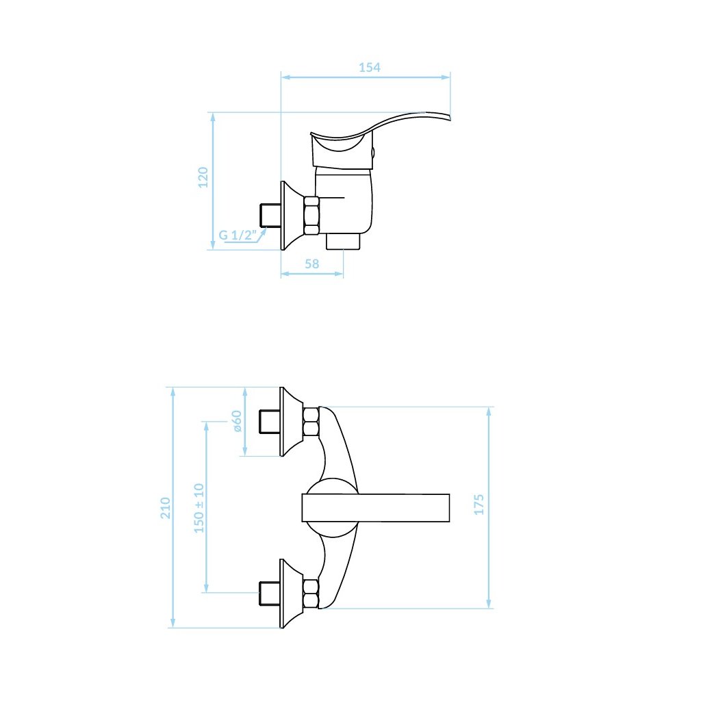 Kuchinox Argo, nástenná sprchová batéria 150mm, chrómová, LAV-BKA_040D