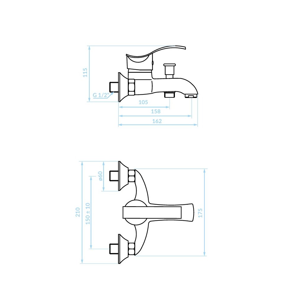 Kuchinox Argo, nástenná vaňová batéria 150mm, chrómová, LAV-BKA_010D
