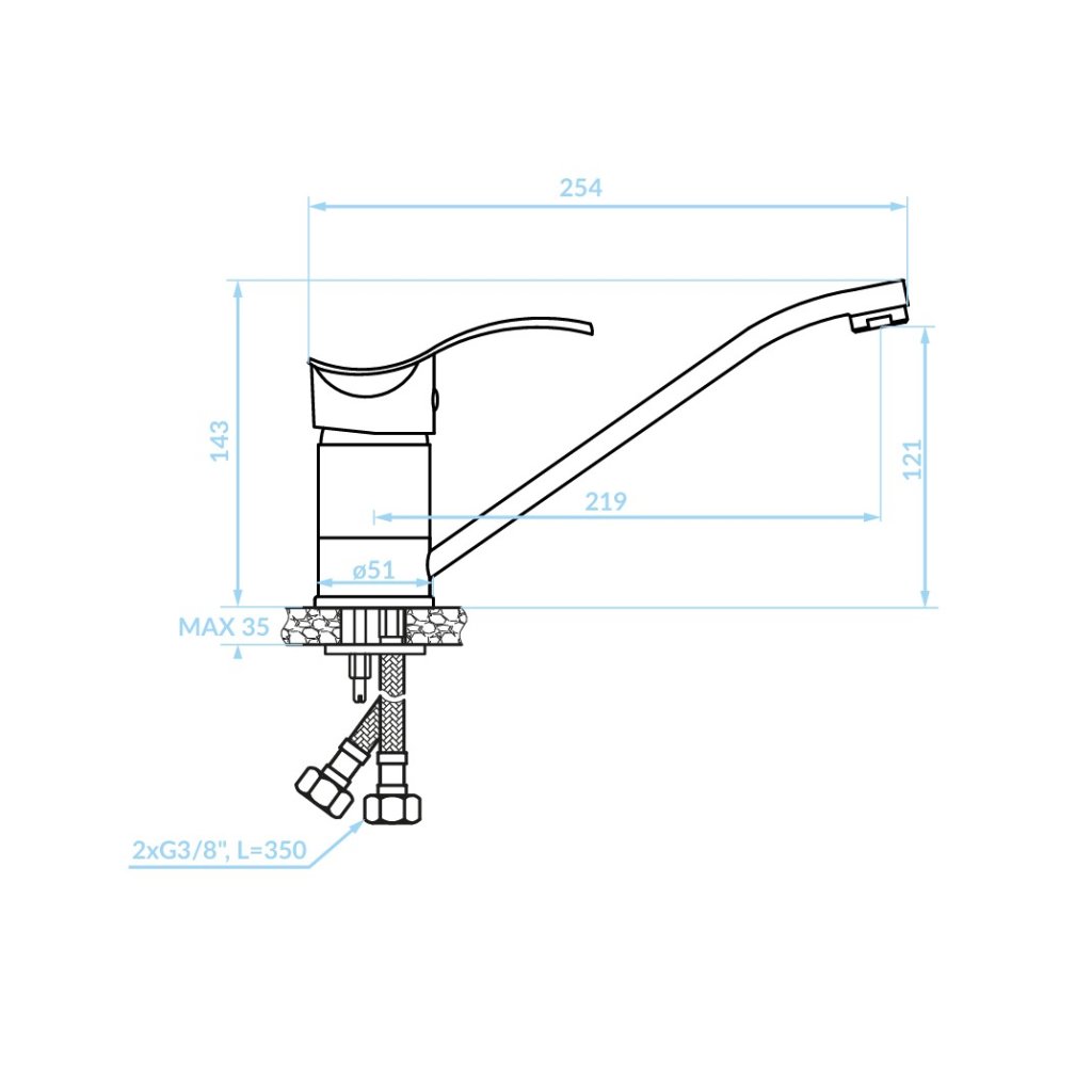 - Dosah výtoku: 219 mm