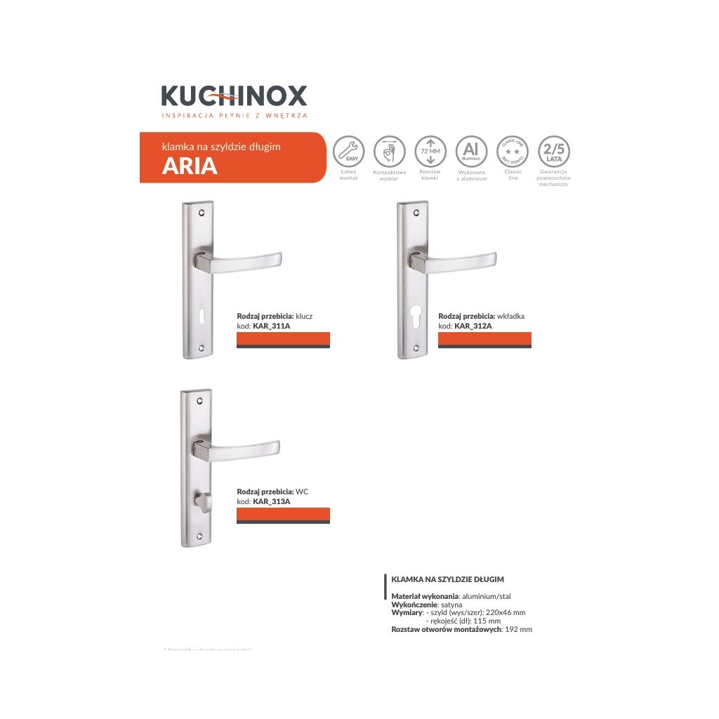 Kuchinox Aria, kľučka na dvere na dlhom kovaní pre interiérový kľúč, satén, LAV-KAR_311A