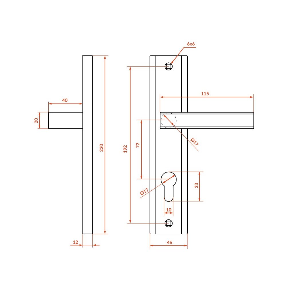 Pri objednávaní kľučiek na dlhom kovaní je potrebné vedieť vzdialenosť medzi osou kľučky a osou kľúča (rozteč). Štandardná vzdialenosť je 72 alebo 90 mm. Zároveň sú dostupné 3 hlavné otvory pre kľúč (interiérový kľúč, otvor pre cylindrickú vložku, WC kľúč)