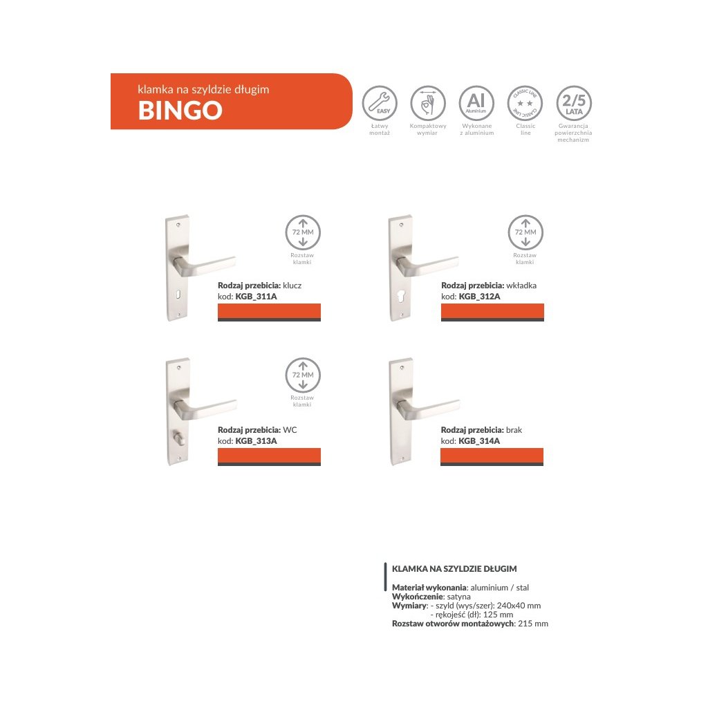 Kuchinox Bingo, kľučka na dvere na dlhom kovaní pre WC zámok, satén, LAV-KGB_313A