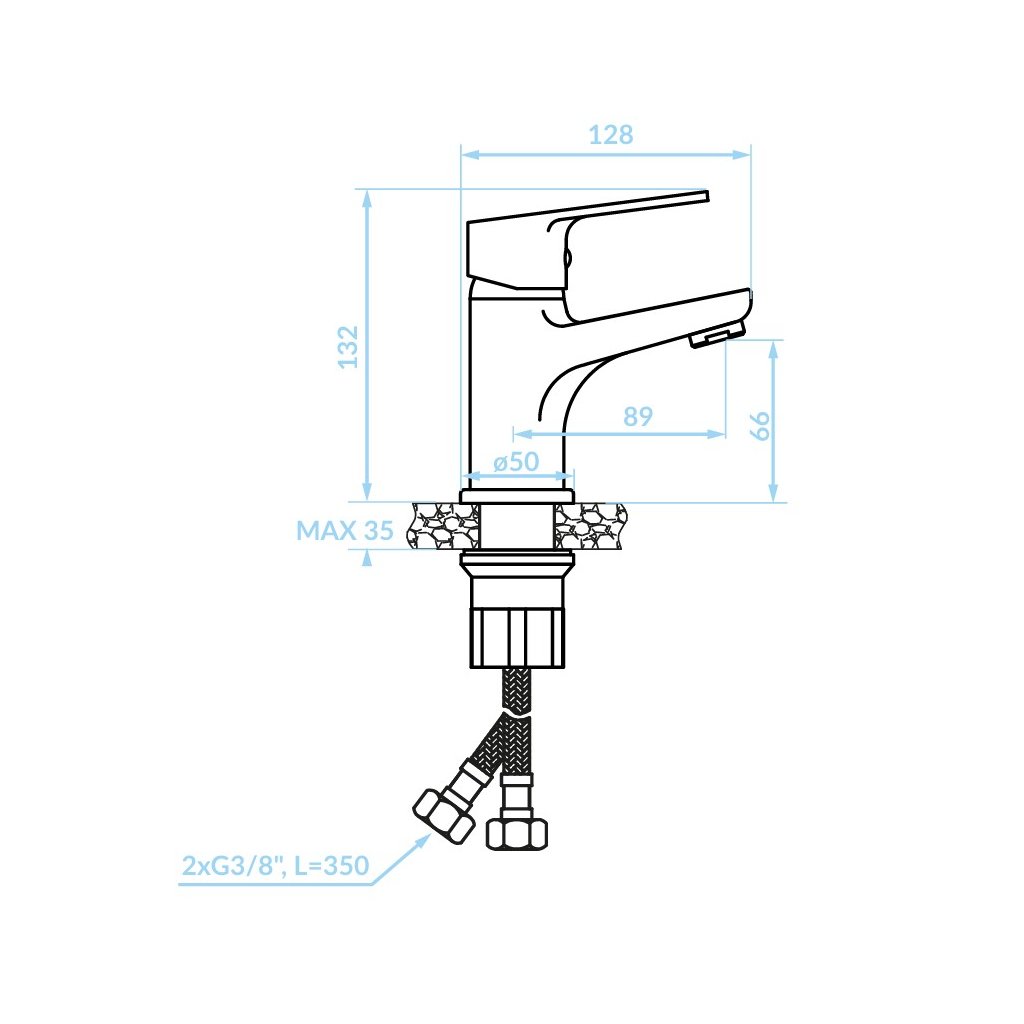 Kuchinox Borgo, umývadlová batéria s odtokovou zátkou, h-132, chrómová, LAV-BKB_022D