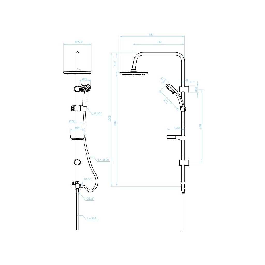 - Sada obsahuje: dažďovú sprchu, ručnú sprchovú hlavicu, misku na mydlo, sprchovú hadicu, držiak ručnej sprchovej hlavice