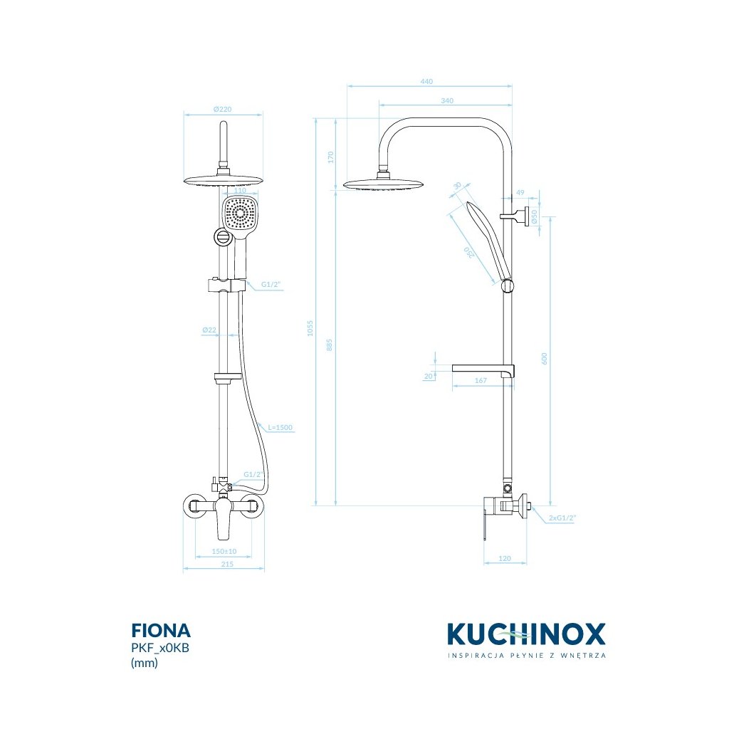 Kuchinox Fiona, sprchový stĺp s ručnou a hlavovou sprchou, čierna matná, LAV-PKF_70KB