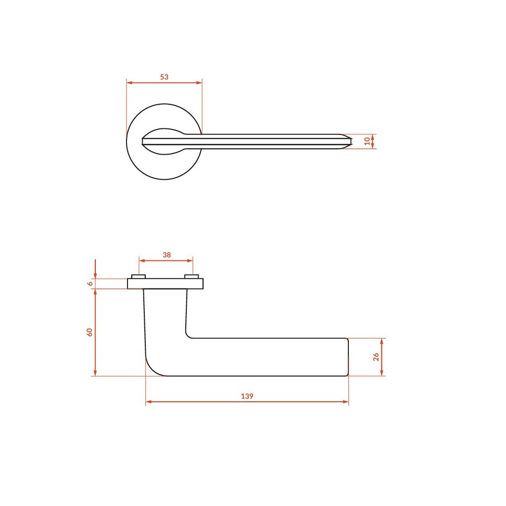 - Materiál kovania rukoväte: Hliník - maskovací kryt ZNAL - montáž, vnútorná časť rozety