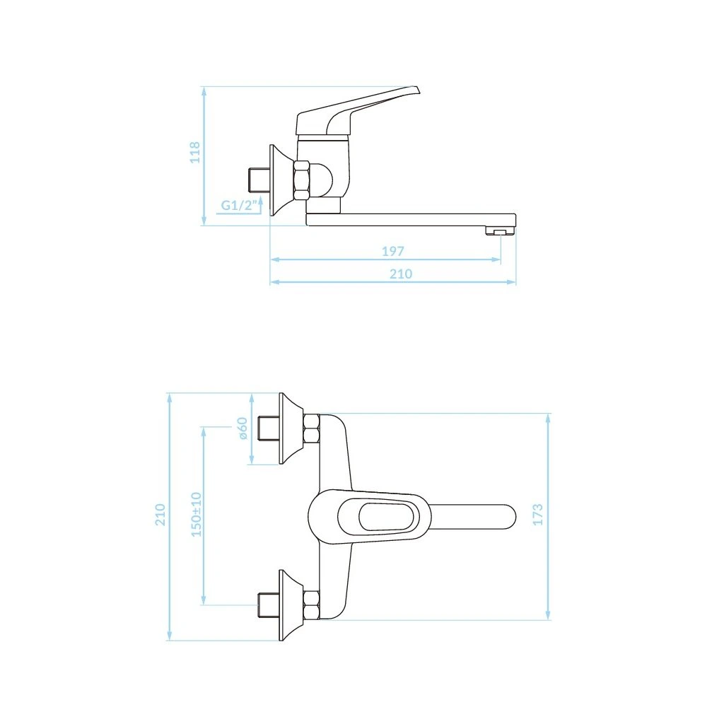 Kuchinox Grace, nástenná umývadlová/drezová batéria L-197, chrómová, LAV-BKY_050D