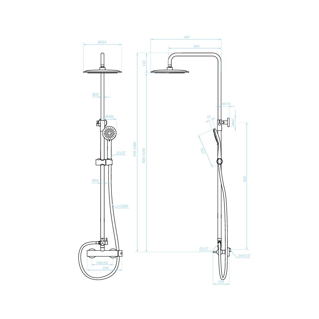 - Dĺžka sprchovej hadice (mm) 1500