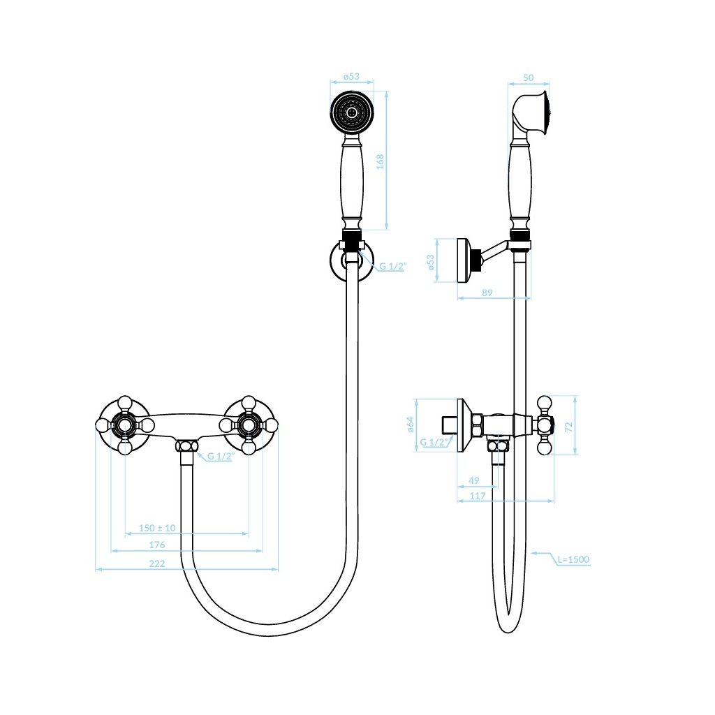 Kuchinox Stilo, nástenná sprchová batéria s ručnou sprchovou súpravou, mosadzná, LAV-BKI_541D