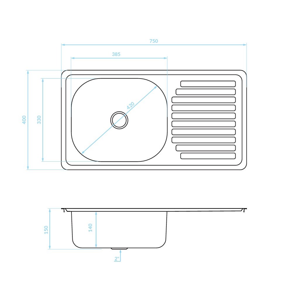 ✅ Komora s hĺbkou 140 mm a praktický integrovaný odkvapkávač maximalizujú funkčnosť drezu na relatívne malom priestore.