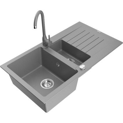 Mexen Carlos, granitový drez 582x475x177 mm, 1,5-komorový, čierna-strieborná metalíza, 6518581500-73