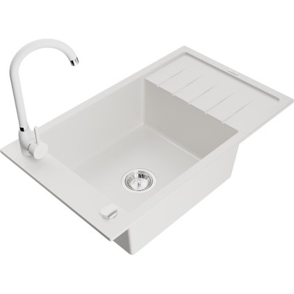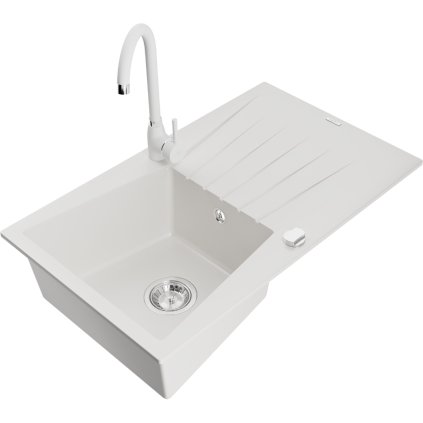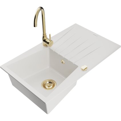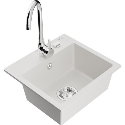 Mexen Milo, 1-komorový granitový drez 43,5x41 cm a kuchynská batéria Telma, biela, 6505-20-670200-50