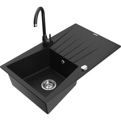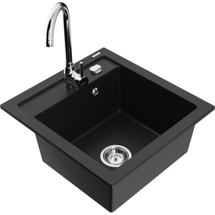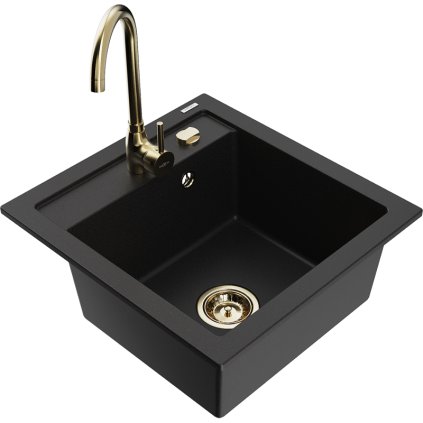Mexen Diego, 1-komorový granitový drez 49x49 cm a kuchynská batéria Telma, čierna, 6512-77-670200-70