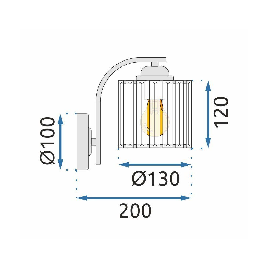 Lampa je vyrobená z krištáľového skla a kovu - spolu s mriežkou. Nástenná lampa má závit E27, maximálny výkon žiarovky je 60W.
