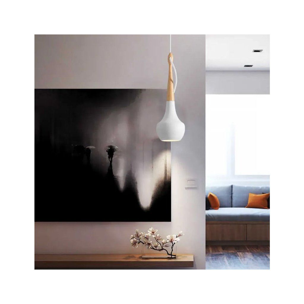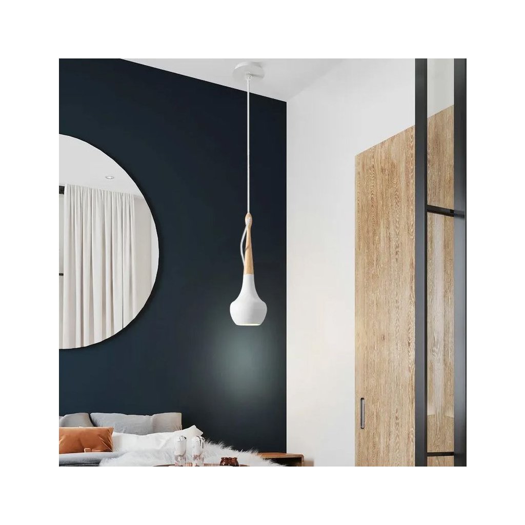 Závesné svietidlo vyrobené z kovu s krytom na strope a dreva. Svietidlo má najobľúbenejší závit určený pre žiarovky E27. Dĺžku kábla je možné prispôsobiť miestnosti alebo usporiadaniu. Na výrobu svietidla bol použitý najkvalitnejší materiál. Jedinečný tvar sa hodí do každej miestnosti, bez ohľadu na štýl jej povrchovej úpravy.