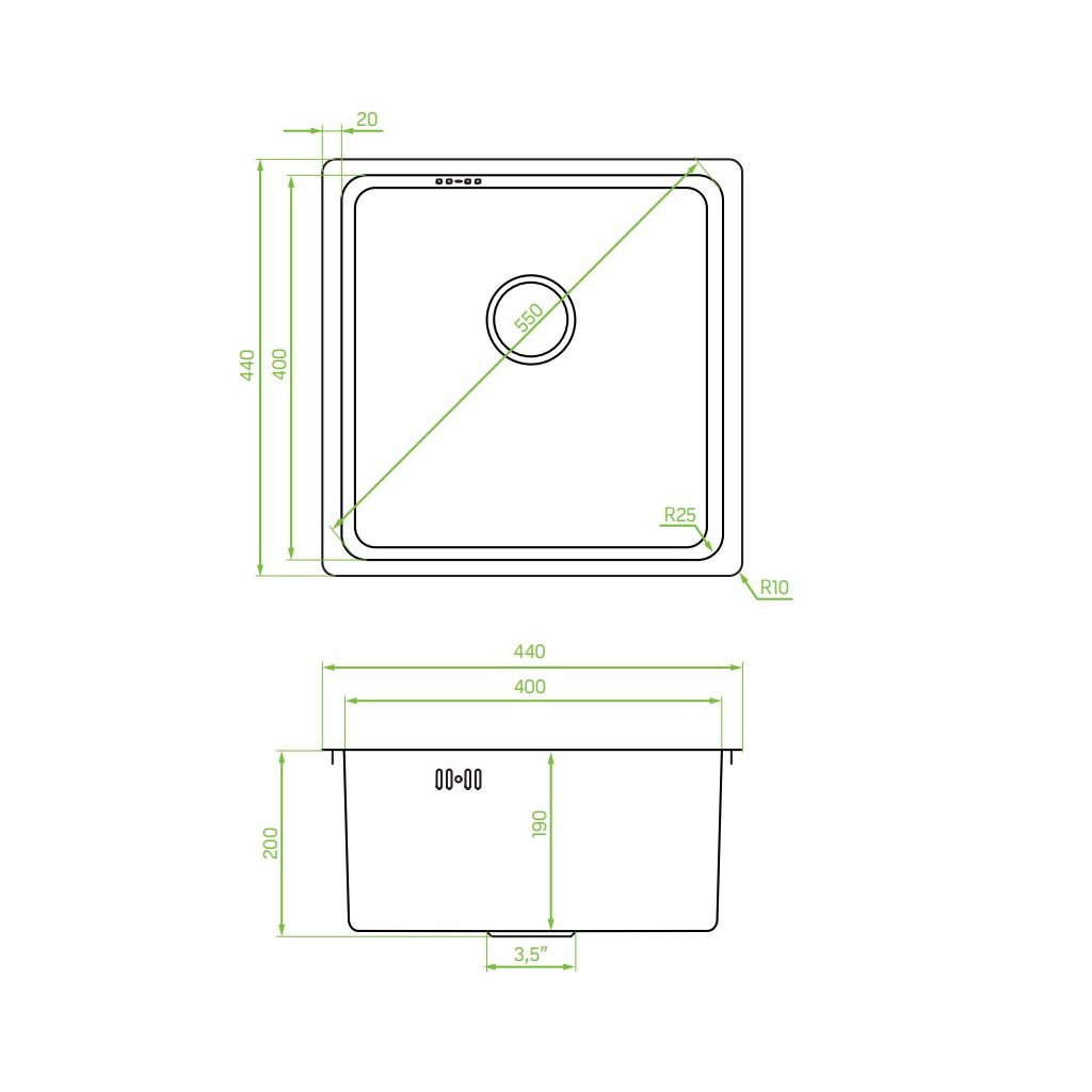 - Odtok: 3,5''