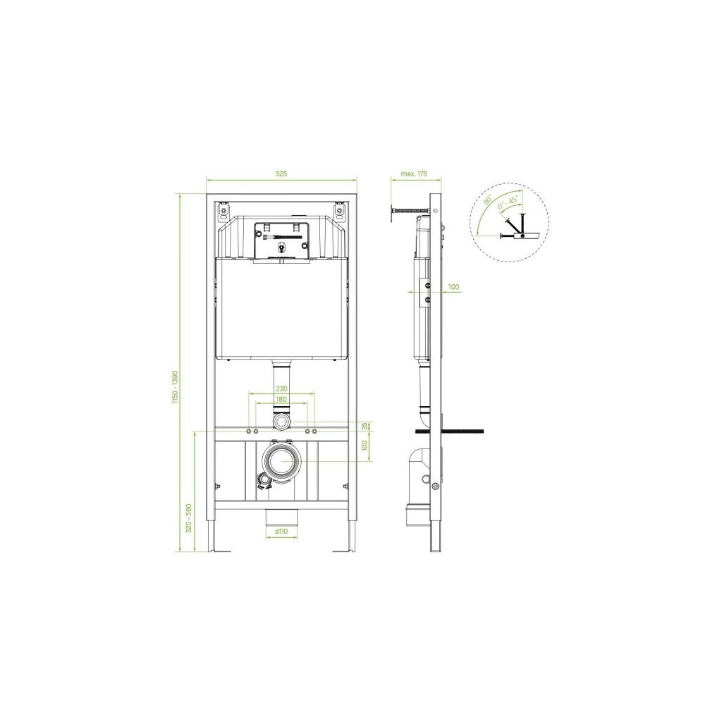 - nastavenie množstva splachovania: min. 2 l/6,25 l; max. 3,25 l/7,5 l
