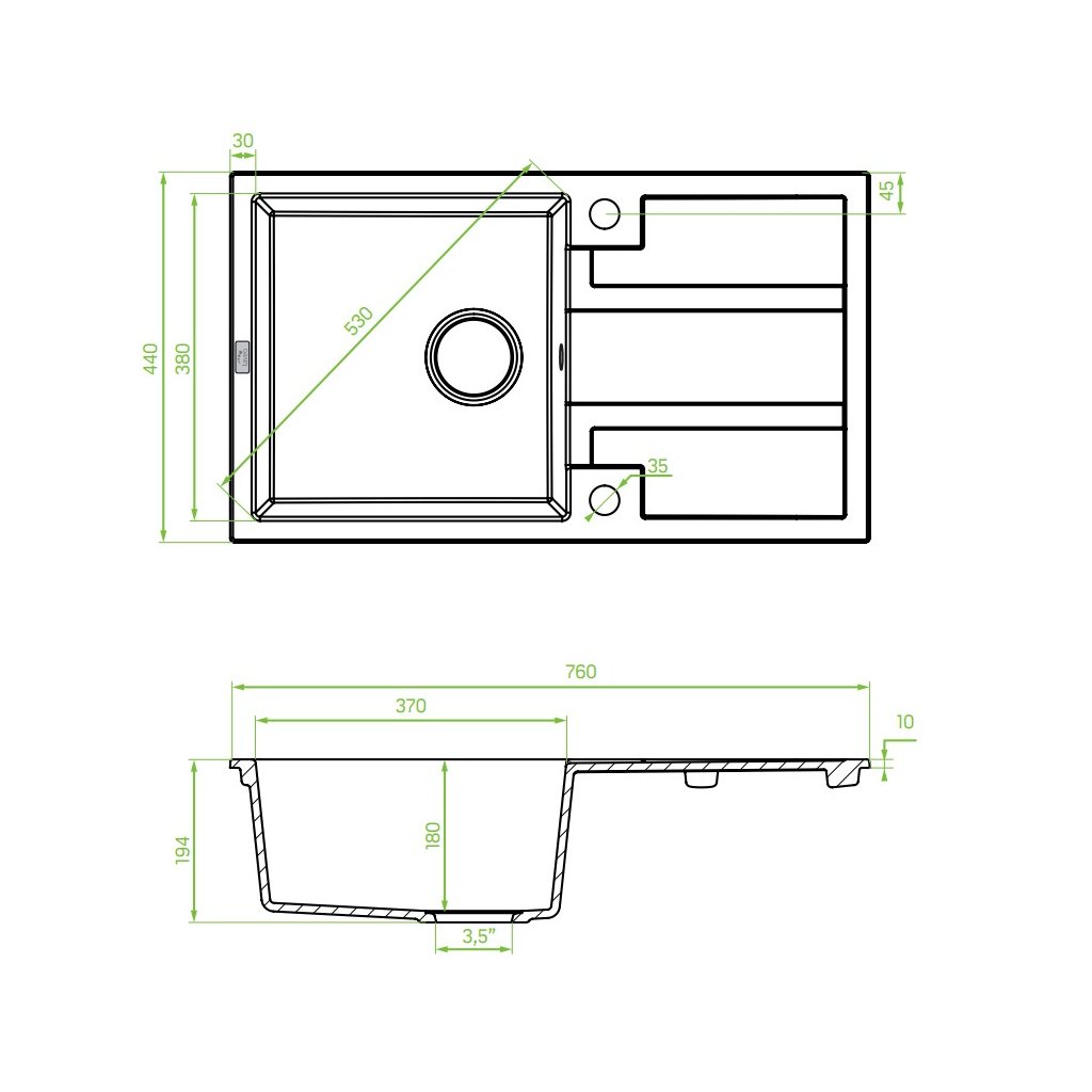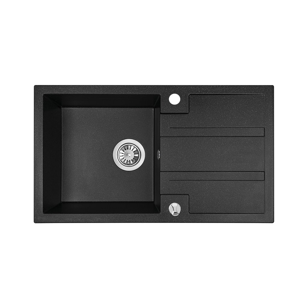 Laveo Barbados, 1-komorový granitový drez 760x440x194 mm, čierna škvrnitá, LAV-SBB_711T